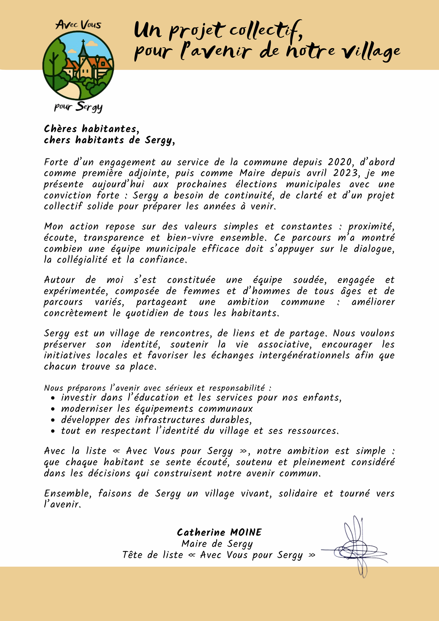 notre liste vous propose un projet collectif pour l’avenir de notre village.